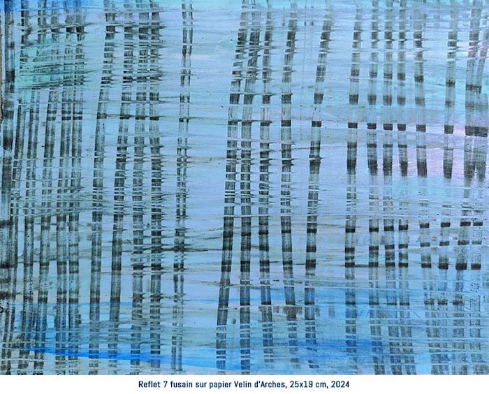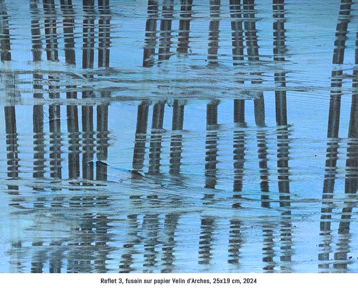 C’est ce geste là qui me conduit aux dessins au fusain. Le geste répété du fusain et de la gomme guident désormais cette nouvelle recherche. Il est alors question de reflets, d’eau et d’espaces sensibles.